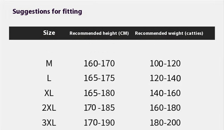 Size: M 47.50kg-70.00kg,L 200kg-80.00kg,XL 70.00kg-90.00kg,2XL 80.00kg-100.00kg,3XL 90.00kg-kg